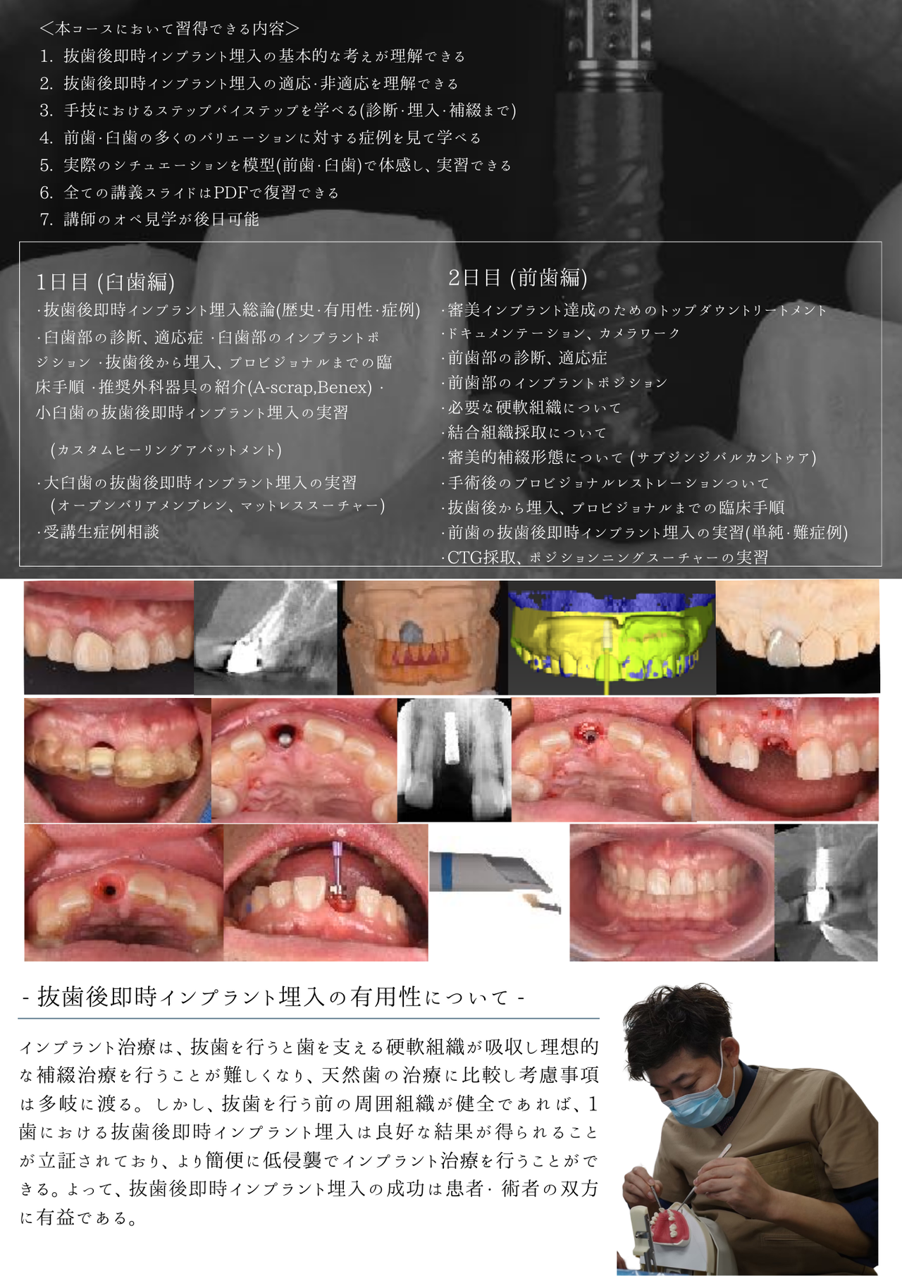 多くの要望が寄せられていた抜歯即時インプラント埋入のコースを開催しています